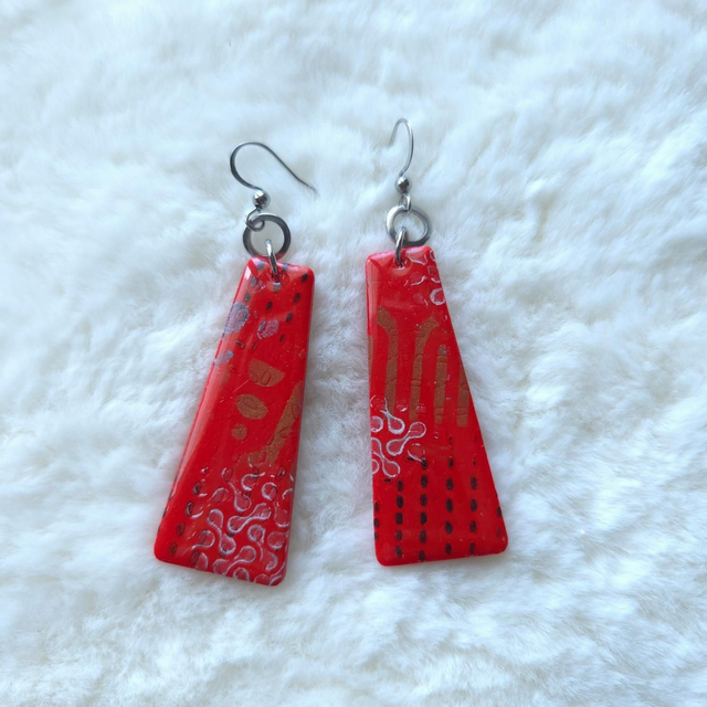 Frida est une paire de boucles d’oreilles vibrante et lumineuse, façonnée en argile polymère. Chaque élément est modelé, poncé et peint à la main, puis protégé par une fine couche de résine qui apporte une brillance subtile et met en valeur le motif.