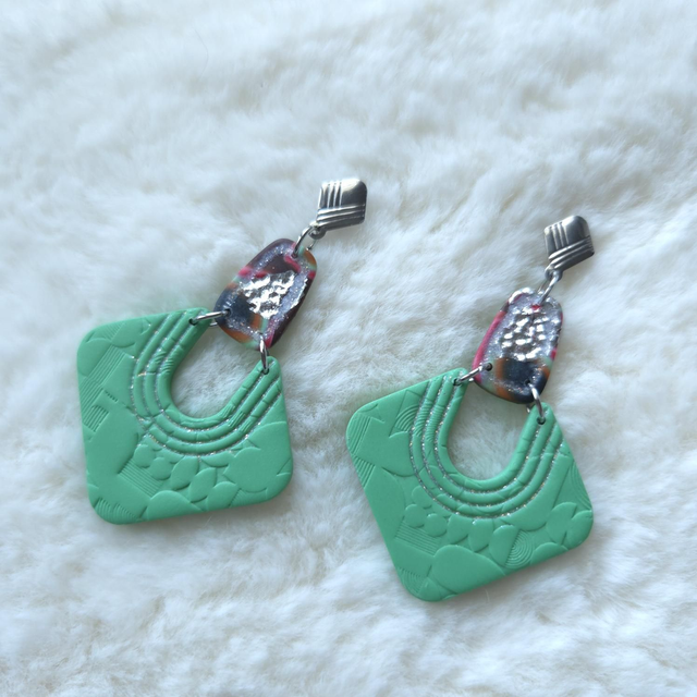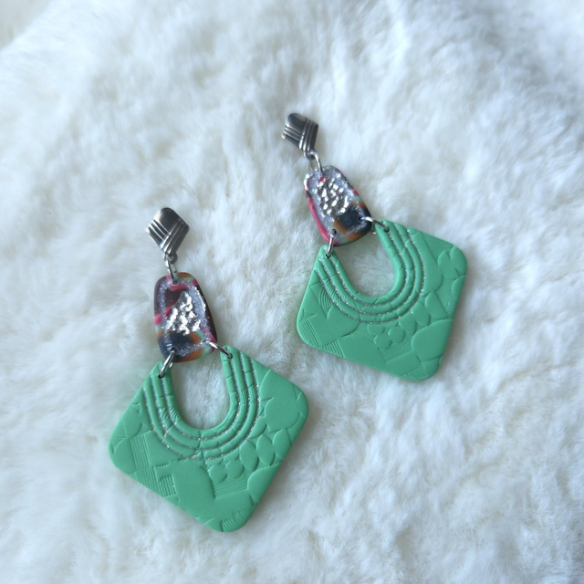 Les boucles d’oreilles Noée sont des pièces uniques, modelées entièrement à la main en argile polymère.